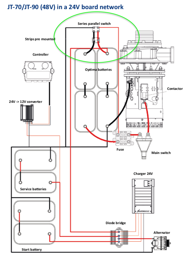 24v => 48v: To power the Jet Thruster pump unit with 48V in a 24V circuit